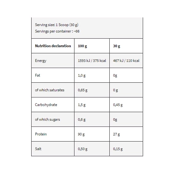 Порошок ізоляту сироваткового протеїну для приготування високобілкових коктейлів. Продукт призначений для спортсменів і фізично активних людей із вищою потребою в білках. Білок сприяє підтримці та росту м'язової маси.