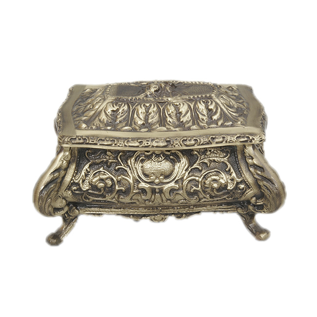 Розмір: 21х15х12 см, ручна робота (Hand made)Колір: антикМатеріал: бронзаВес: 2460 грВиробник: Іспанія Бронзова скринька прямокутної форми, зручна у використанні та дуже містка. Скринька бронзова поєднує в собі простоту і витонченість, плавність ліній і стане приємним і водночас дуже практичним подарунком, адже для будь-якої жінки дуже важливі не лише самі прикраси, а й те, як і де їх зберігати.Цей виріб вироблено в Іспанії і поєднує в собі красу відтворену за старовинними ескізами виконану за старовинними технологіями. Будь-яка жінка відкривши таку скриньку хоч на мить відчує себе королевою!Скринька з бронзи на витончених ніжках це найкращий подарунок для будь-якої жінки. Бронзова скринька це універсальний подарунок для жінки будь-якого віку та з будь-якого приводу.