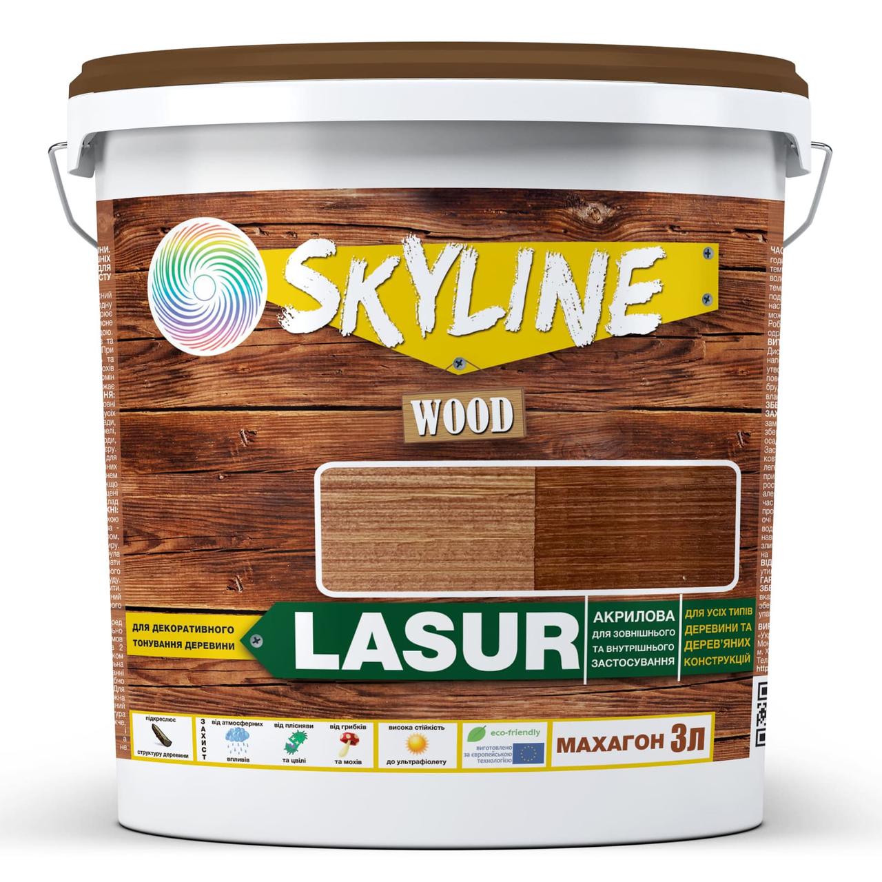 Лазур декоративно-захисний Skyline Lasur Wood для обробки дерева Махагон 3 л, 8973490В наявності