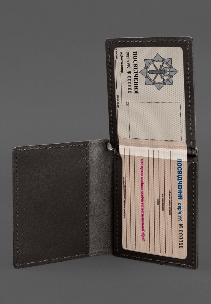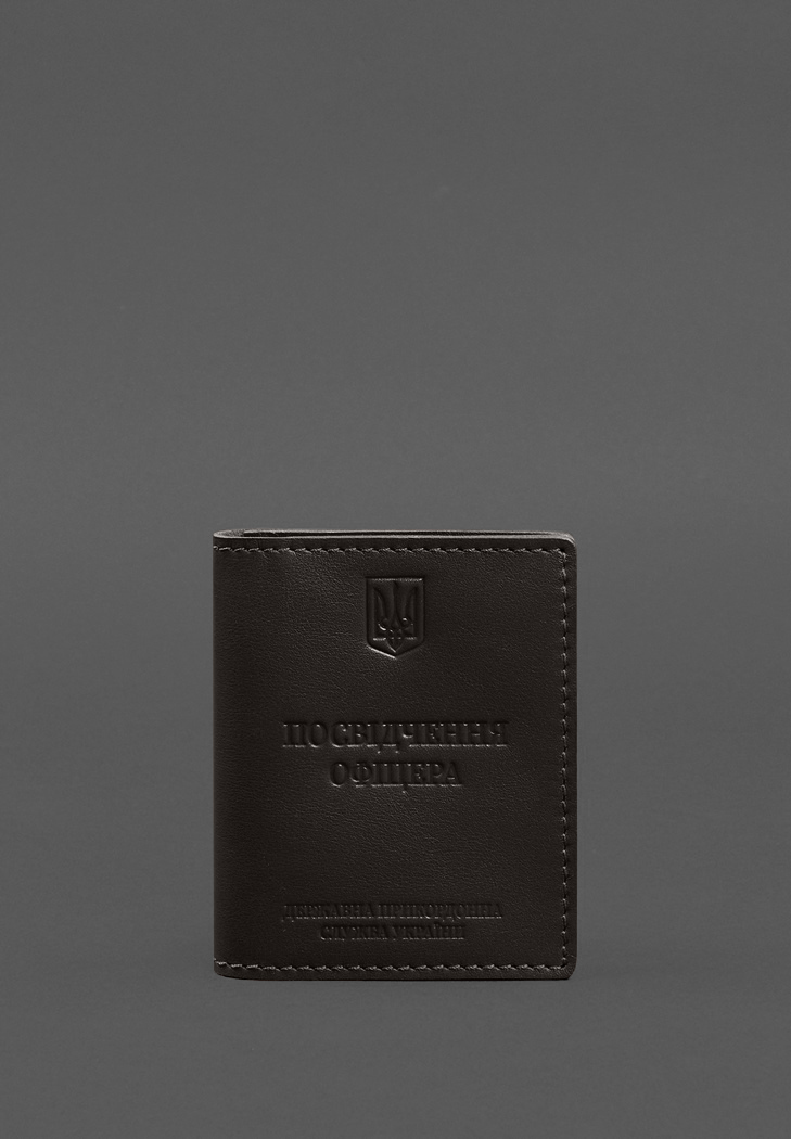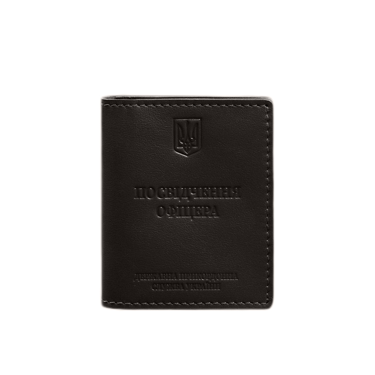 Шкіряна обкладинка на Посвідчення офіцера від бренду БланкНот спеціально розроблена для дбайливого зберігання вашого документа. Пошита з високоякісної натуральної шкіри краст Ця шкіра дуже міцна і довговічна. Тиснення на лицьовій стороні обкладинки повністю дублює оригінальний бланк документа. Вгорі розташований герб України, посередині міститься напис «Посвідчення офіцера», нижче – «Державна Прикордонна Служба України»
