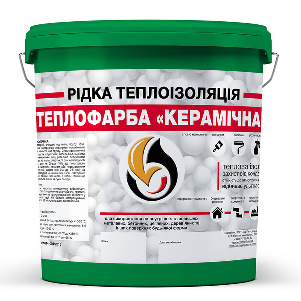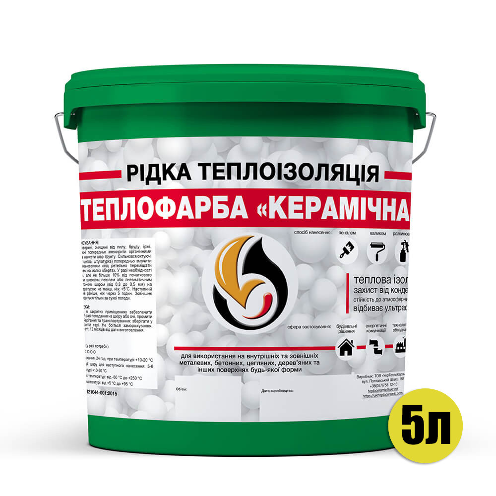 НАЙПРОСТІШИЙ, УНІВЕРСАЛЬНИЙ І ЕФЕКТИВНИЙ МЕТОД УТЕПЛИТИ БУДЬ-ЯКУ ПОВЕРХНУ!Теплоізоляційне рідкокамічне покриття, обмазувальна теплоізоляційна фарба-мастика на основі вакуумованих мікросфер з акриловим сполучним.Являє собою енергозберігаюче еластичне тонкошарове покриття, призначене для теплоізоляції трубопроводів, конструкцій будівель, обладнання, а також різних інженерних споруд, що обгороджують, має високі термоізоляційні та гідроізоляційні властивості.