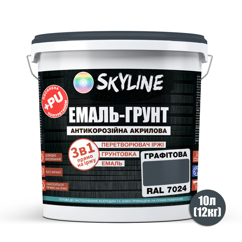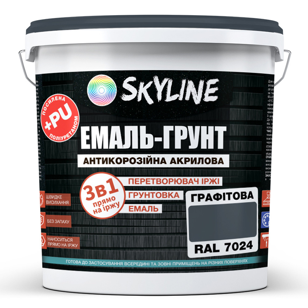 Емаль-грунт 3в1 Skyline акрил-поліуретанова шовковисто-матова RAL 7024 Графітовий 12 кг, 8973462