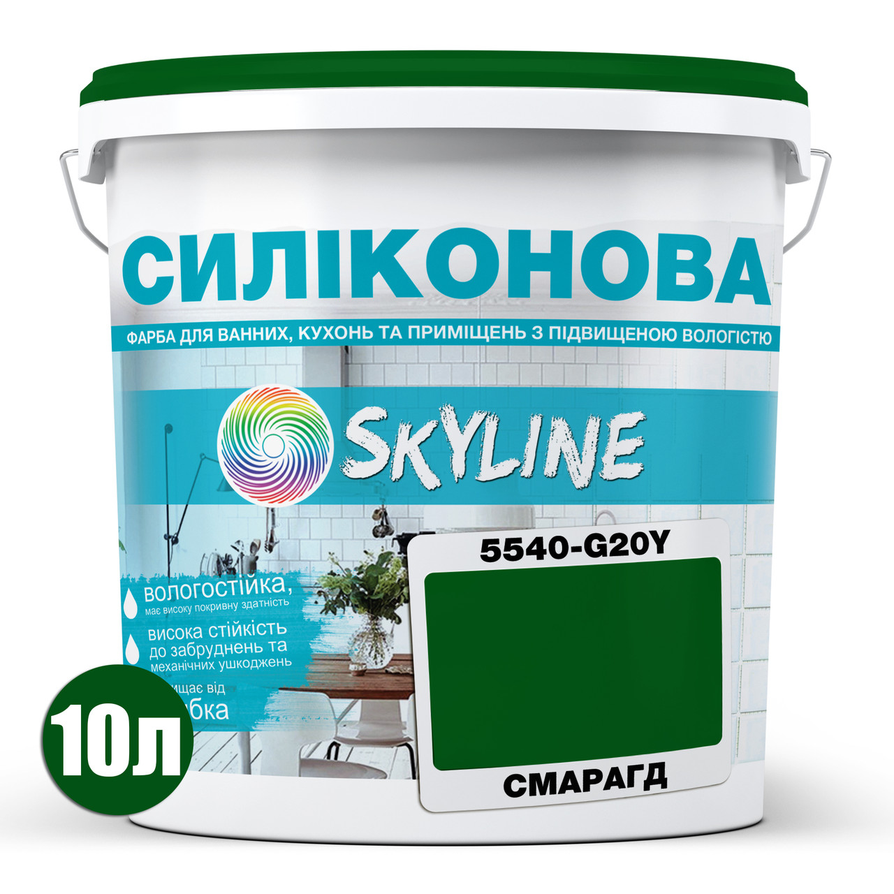 Фарба Skyline для вологих приміщень 5540-G20Y (C) Смарагд 10 л, 8950503