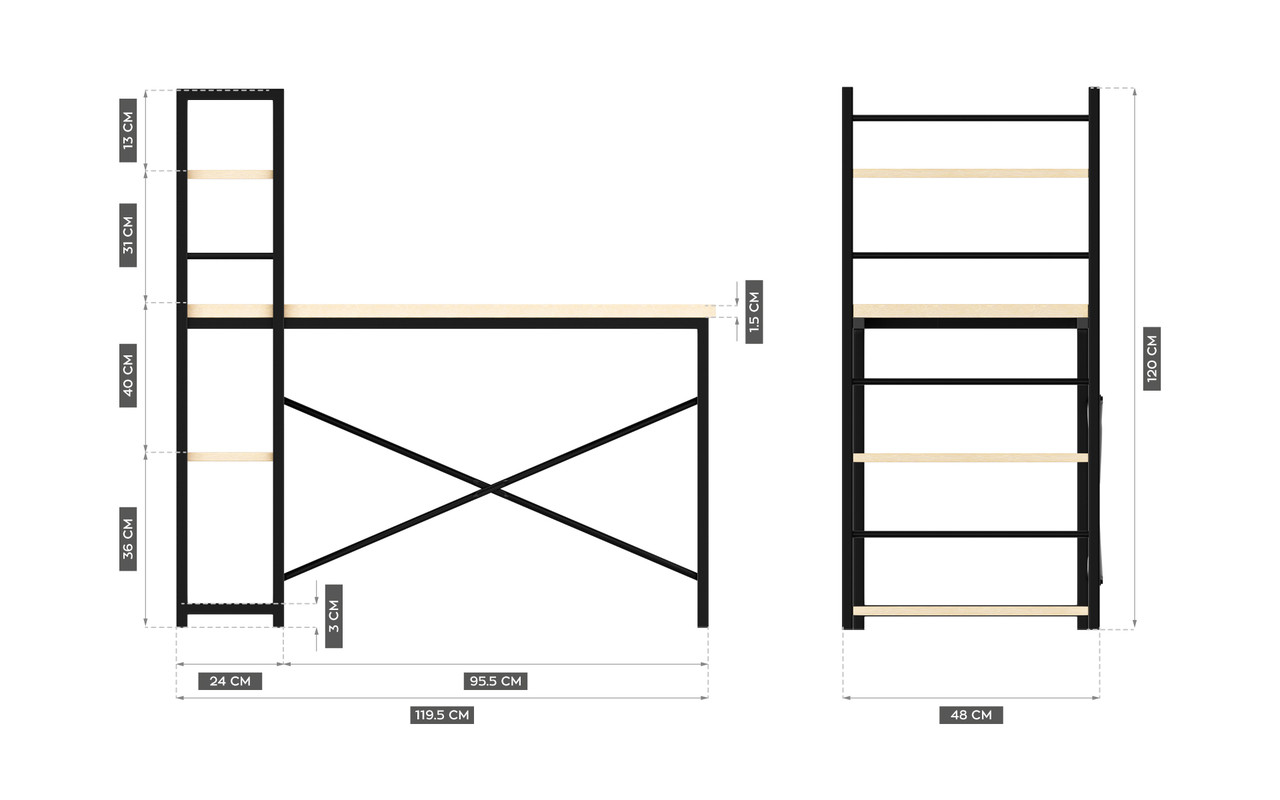 • Простора стільниця і 3 полиці