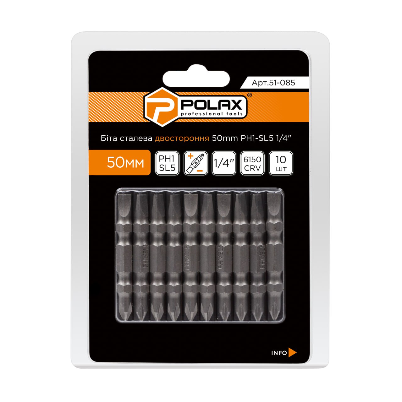 Біта двостороння Polax сталева 50 мм PH1-SL5 1/4", 10 шт (51-085) - це надійний інструмент, який зробить ваші завдання ще більш зручними та ефективними. Ключові характеристики цієї біти включають в себе використання високоякісної CrV сталі, що гарантує її міцність і довгий термін служби. Довжина біти становить 50 мм, що забезпечує зручність у використанні. Однак, найбільш дивовижною особливістю цієї біти є її двостороння конструкція. З одного боку, вона оснащена шліцом PH1, а з іншого - SL5, що робить її універсальним рішенням для роботи з різними видами гвинтів і шурупів. Ви більше не будете втрачати час на пошук потрібної біти - досить просто перевернути її! Набір з 10 штук (51-085) забезпечує вам запас біт для різних завдань і проектів. Будь ви професіоналом у сфері будівництва, ремонту або монтажу, або просто займаєтеся своїми домашніми проектами, ця двостороння сталева біта Polax стане вашим надійним супутником. Не важливо, які завдання на вас чекають, вона допоможе вам впоратися з ними легко і ефективно.