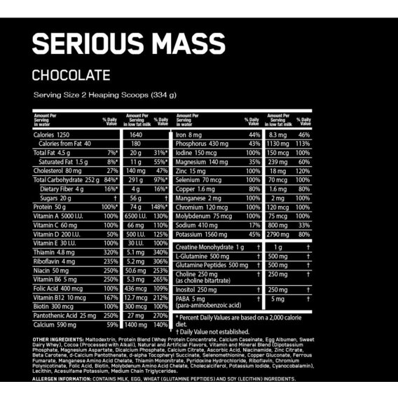 Гейнер Serious Mass от всемирно известного бренда OptimumNutrition – это оптимальное сочетание белков, жиров и углеводов с дополнительными полезными микроэлементами для активного набора мышечной массы и быстрого восстановления организма после тренировок.